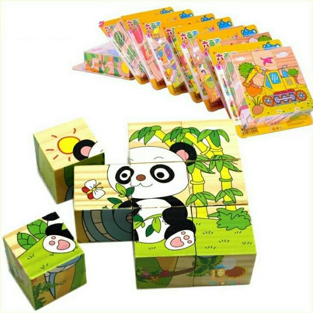 6 in 1 puzzle kayu edukasi 3D jigsaw bongkar pasang Puzle Sumber : shopee.co.id